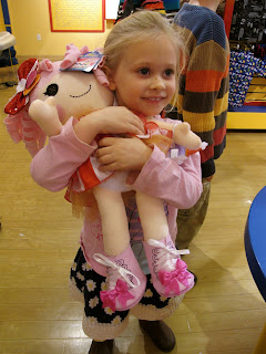 We started the day at Build-a-Bear, since she was given a gift certificate as a gift. She chose to dress and stuff a Lalaloopsy doll.